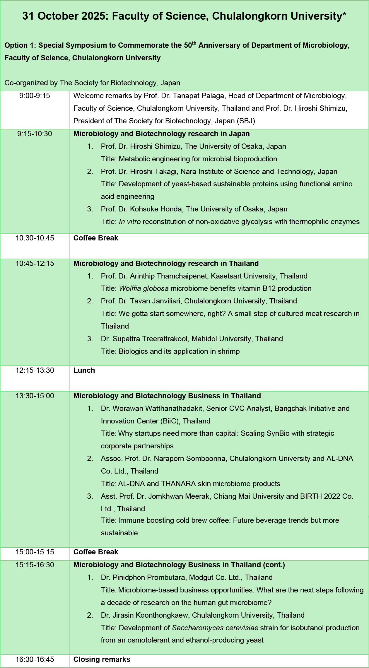 2. Special Symposium Commemorating the 50th Anniversary of the Department of Microbiology, Chulalongkorn University.