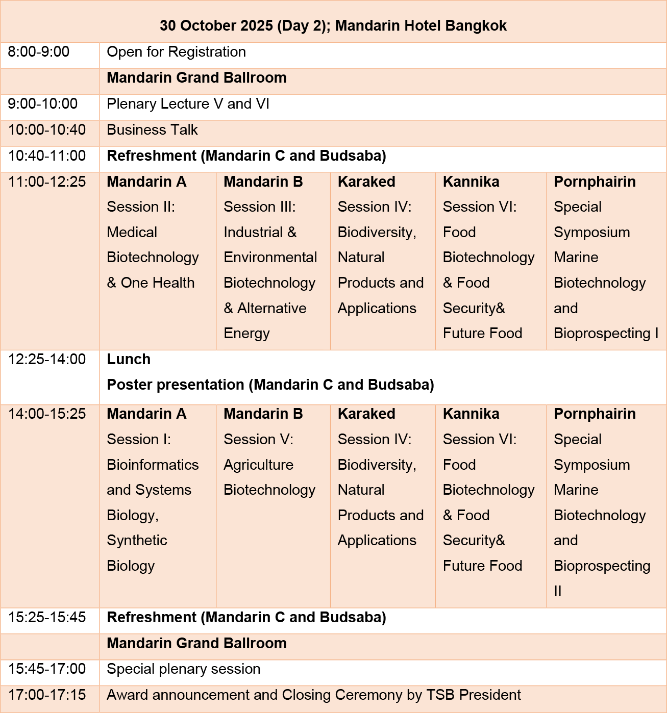 In any circumstances, if you can no longer attend TSB2025, you may cancel your registration by providing written notice to TSB2025 Organizer (mail to: tsb2025thailand@gmail.com).