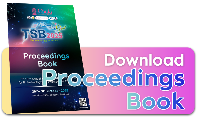 On behalf of the Thai Society for Biotechnology (TSB), and as Chair of the 37th Annual Meeting and International Conference of the Thai Society for Biotechnology (TSB2025), it is my great pleasure to welcome you to our flagship event, taking place from 29 to 31 October 2025.